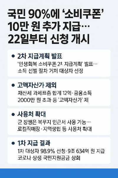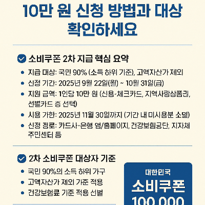 국민 90% 소비쿠폰 2차 지급, 10만 원 신청 방법과 대상 확인하세요